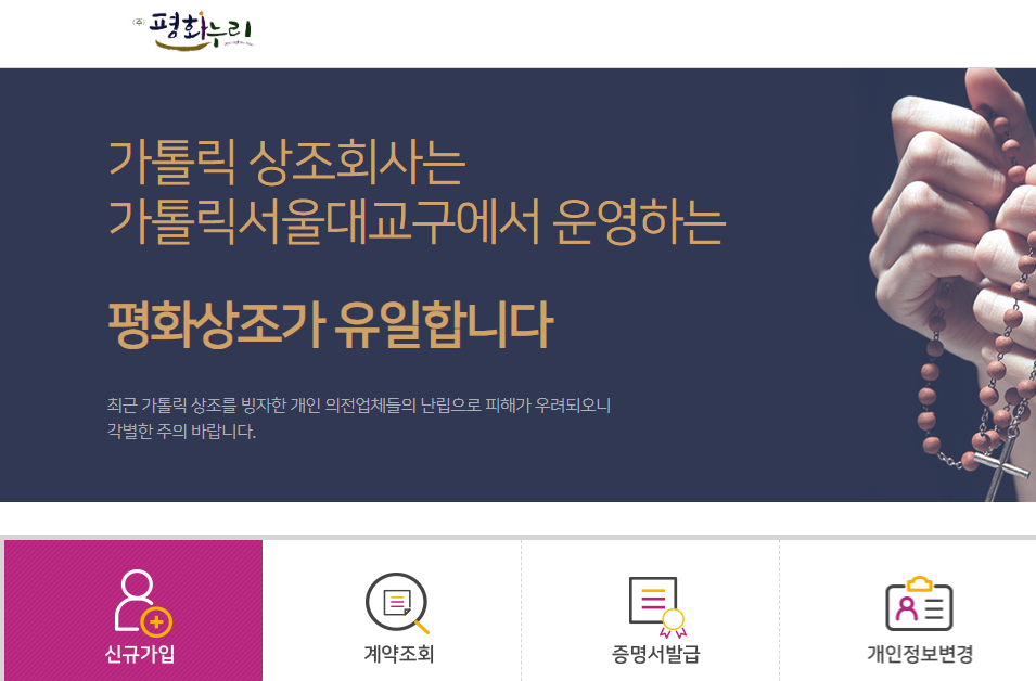 평화상조란 가톨릭 서울대교구에서 운영하는 종합 장례서비스 업체로 평화누리라는 이름으로 알려져 있기도 합니다. 성당을 다니시는 분들이시라면 한번쯤 평화상조에 대해 들어보셨을 텐데요. 가끔씩 본당으로 홍보를 왔던 기억이 나는데, 저희 부모님께서는 두분 앞으로 가입을 해두셨더라구요. 몇번의 고비를 넘기시기는 했지만, 매번 잘 이겨내셨던 터라 생각지 못했는데 갑작스럽게 중환자실에 계시다가 돌아가시는 바람에 경황이 없었는데 아버지가 이전에 가입해 두셨던 평화상조가 있어서 연락을 드렸습니다. 종종 경황없는 유족들 상대로 장례용품에 과도한 비용을 청구하는 곳도 있다는 기사를 보기도 했는데, 가입된 범위내에서 이것저것 신경쓸것 없이 합리적인 상품들로 안내해주셔서 믿고 선택하여 한결 수월했고, 가입내역이 확인후 일부 남은 납입금 부분만 지불을 하고 도움을 받아 장례를 잘 마칠수 있었습니다. 부모님 또는 본인에 대해서 언젠가 한번은 마주해야할 일이기에 믿을 수 있는 상조서비스에 미리 가입을 해두는 것도 좋을 것 같다는 생각이 듭니다.