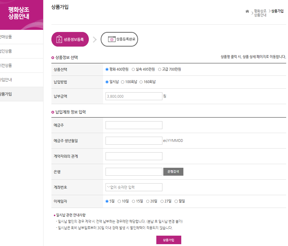 평화상조 가입방법