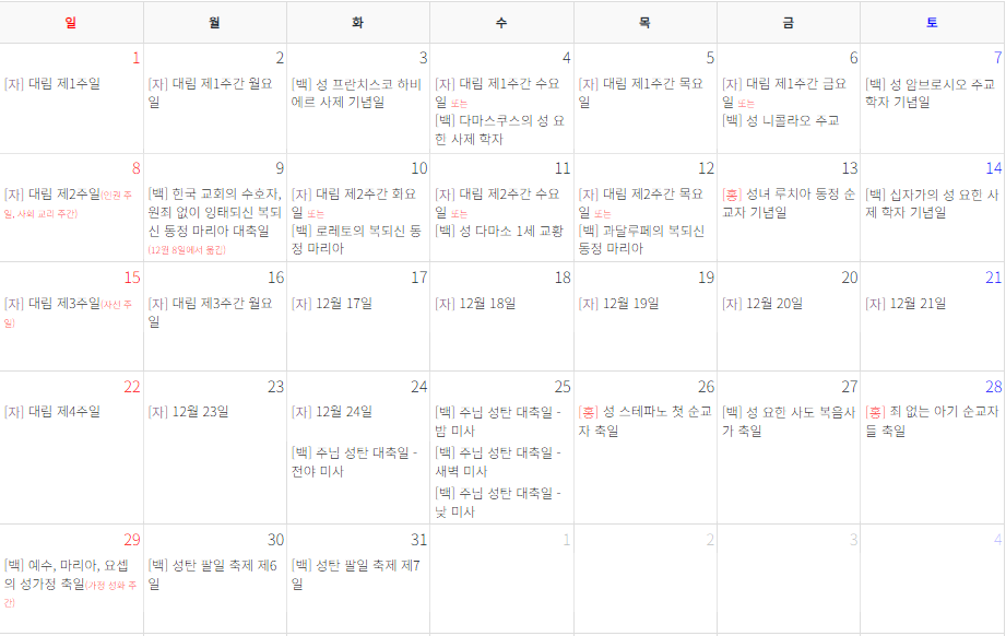 2024년 12월 ( 대림시기는 12월 1일 부터 4주간)