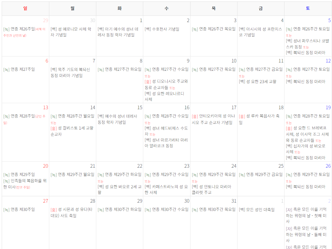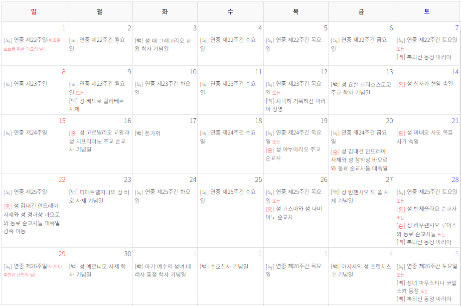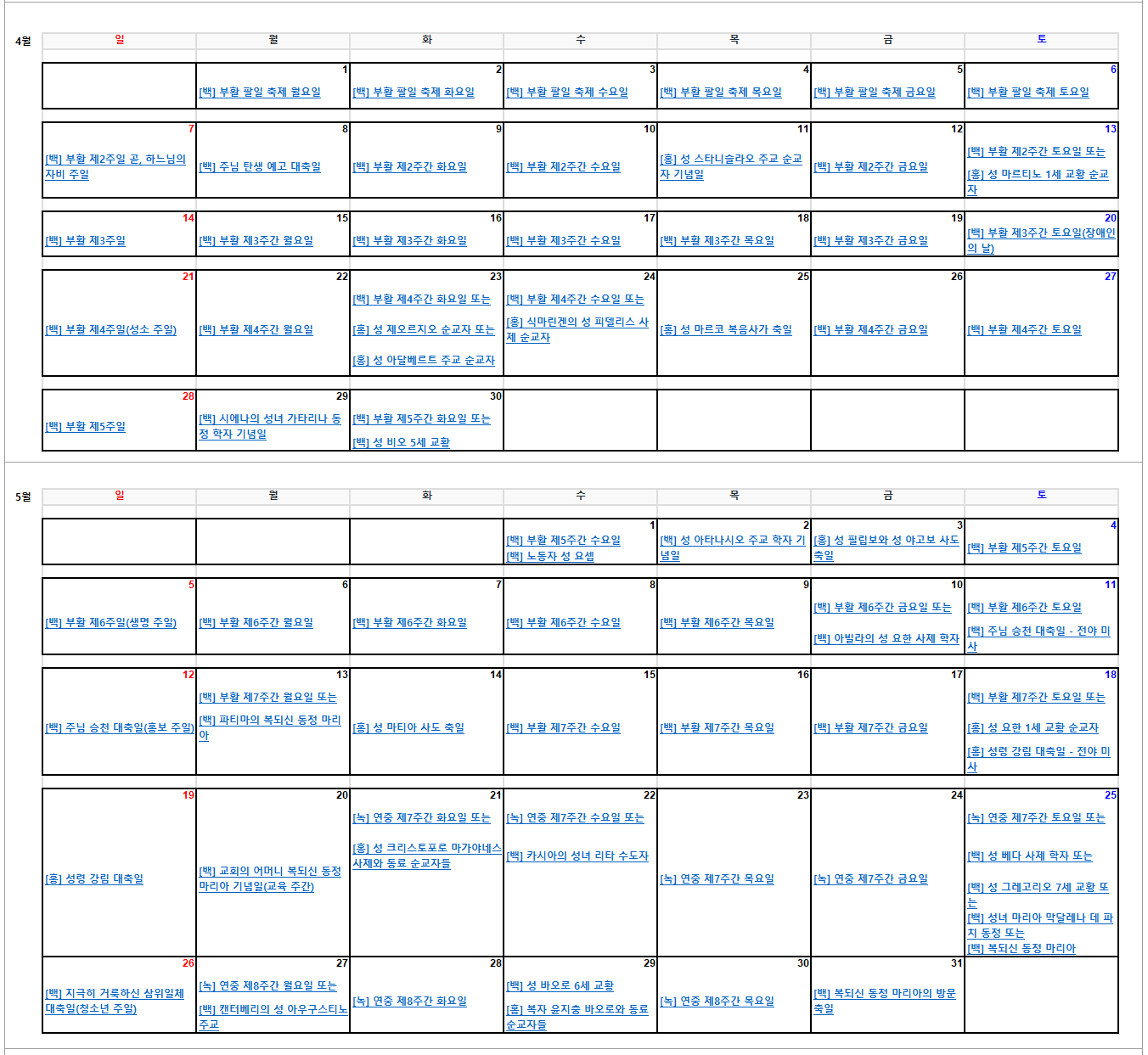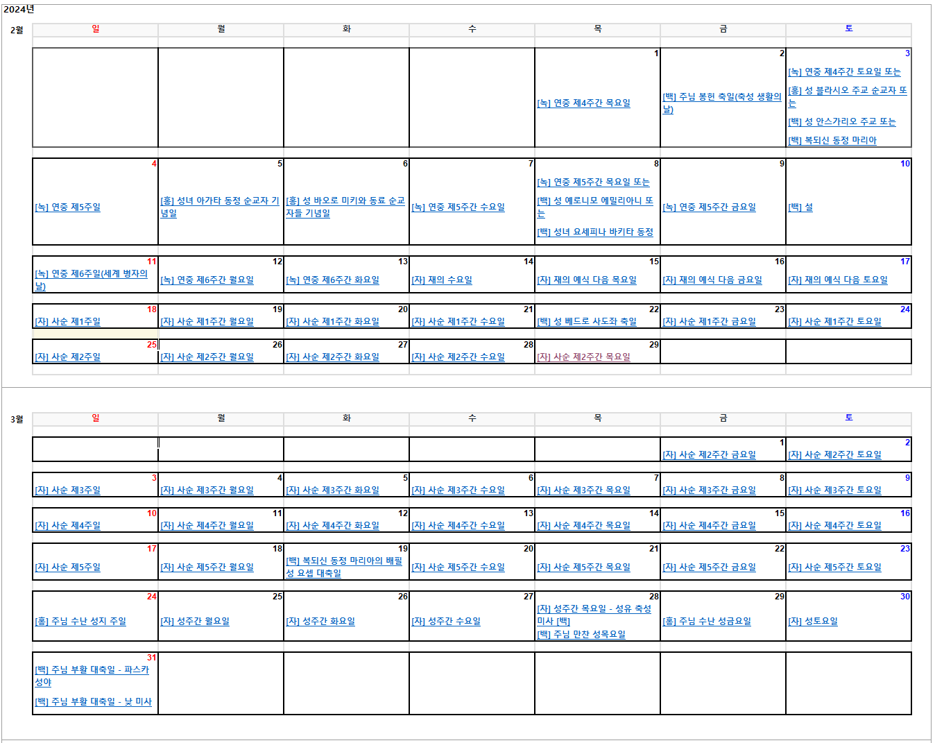 ▶2024년 전례력 이동 축일과 특별주일 확인하기
