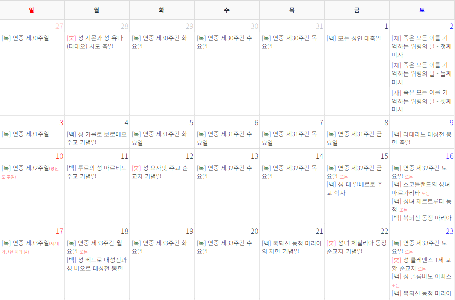 ▶ 가톨릭 전례력 보기 ( 독서 복음 )
