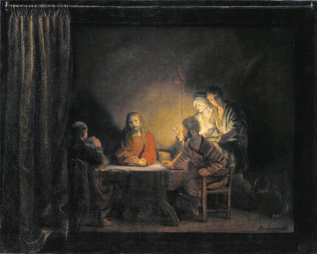 - 렘브란트, 엠마오의 저녁식사, 1648년, 캔버스에 유채, 89.5x111.5cm, 덴마크 국립미술관, 코펜하겐, 덴마크.